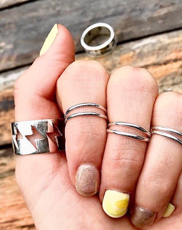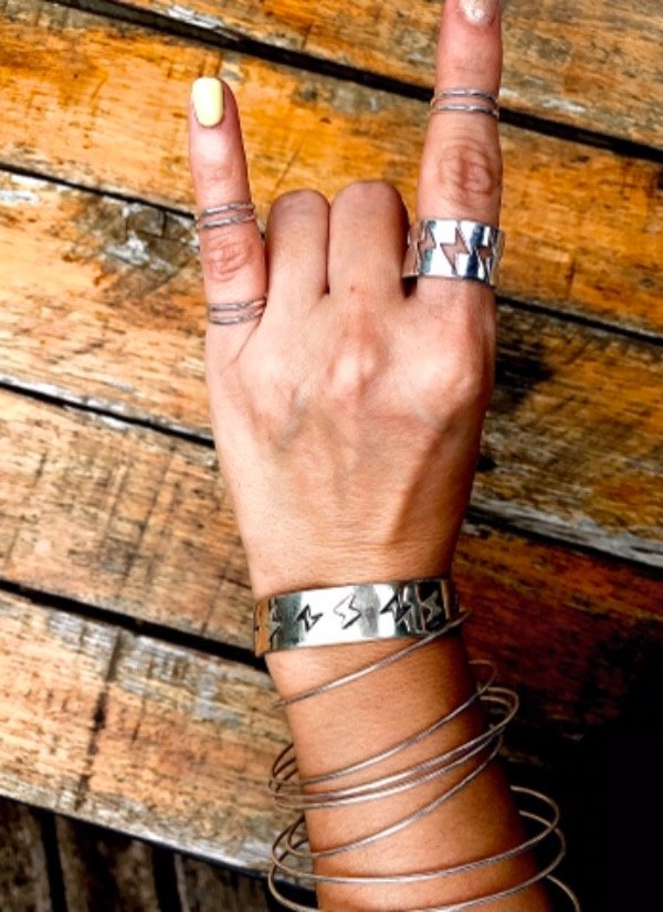 Anillo Bolt. Cinta maciza de plata 925 con rayos calados