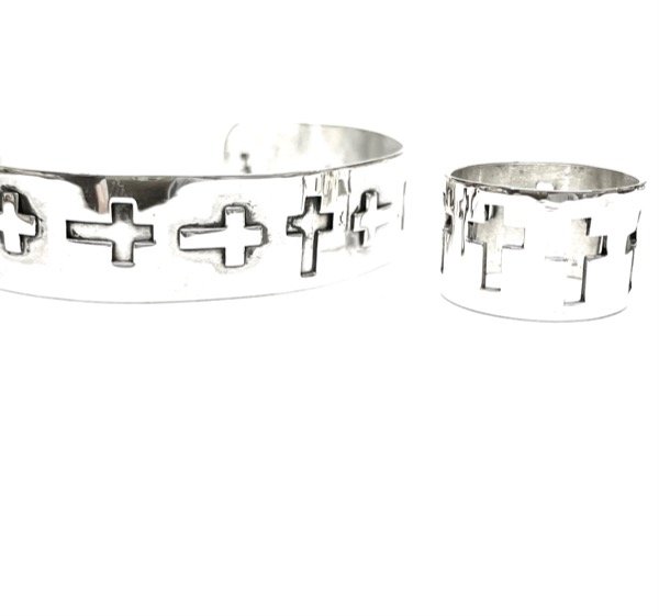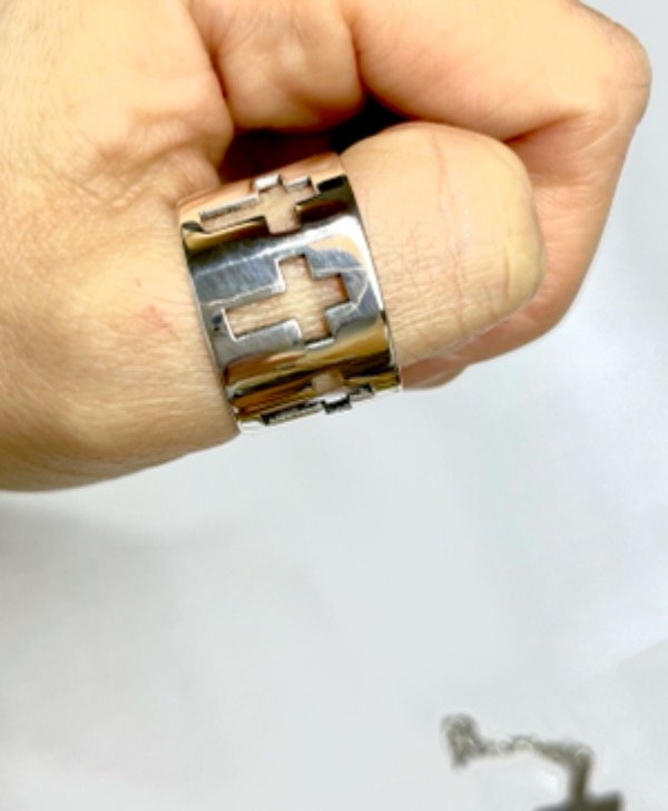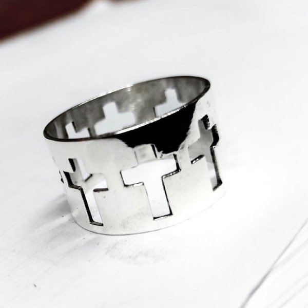 Anillo rigido MADONNA de plata 925 con detalle de cruces caladas