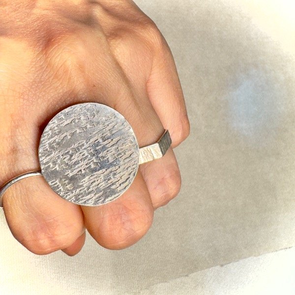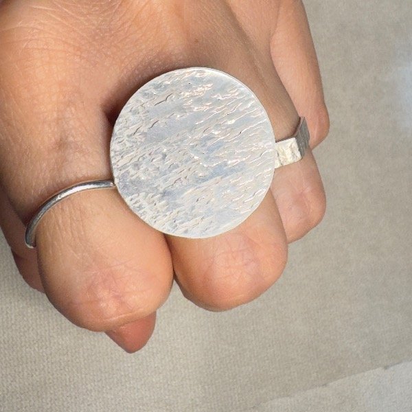 Anillo Playo en Círculo martelado