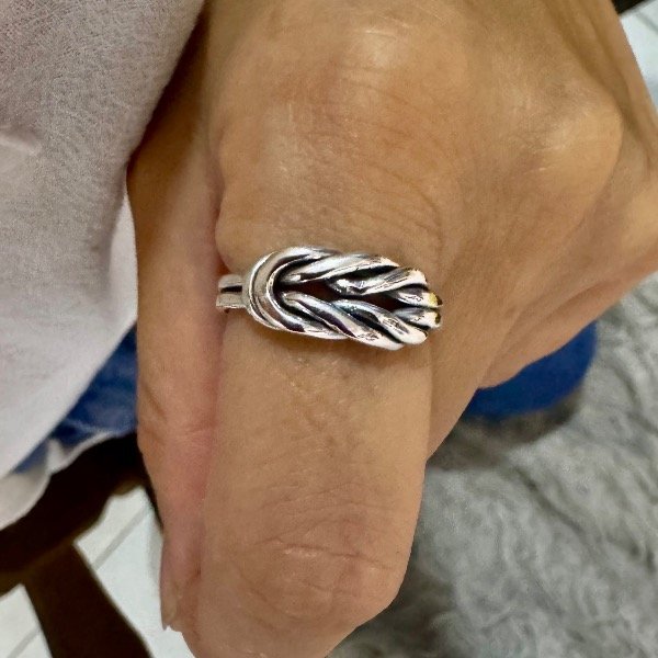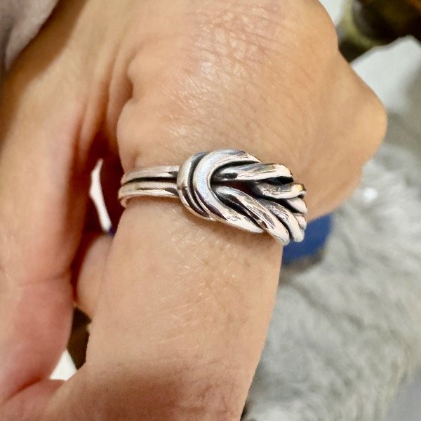 Anillo de plata enlazado haciendo un nudo tipo amarre. Súper lindo