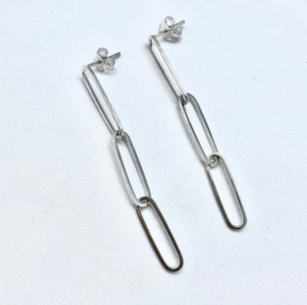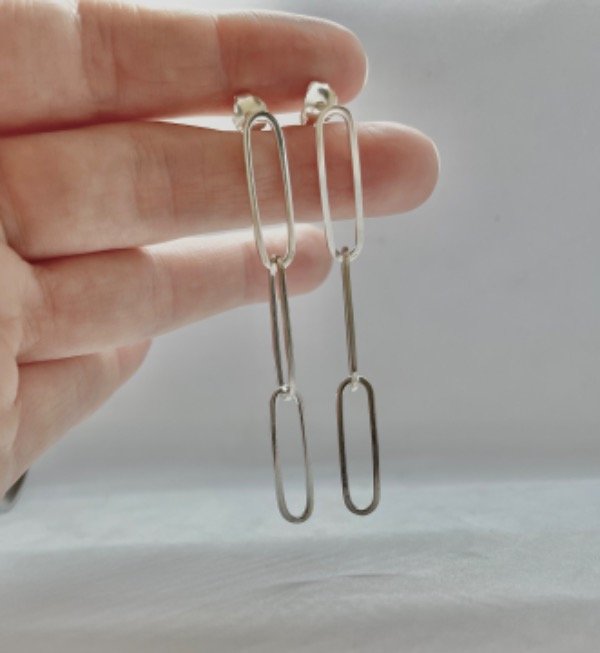 Aros triple eslabón largo, pasantes realizados a mano en plata 925