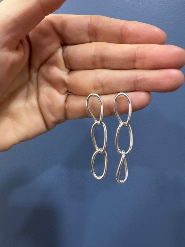 Par de Aros colgantes , pasantes de triple eslabón ovalado torcido