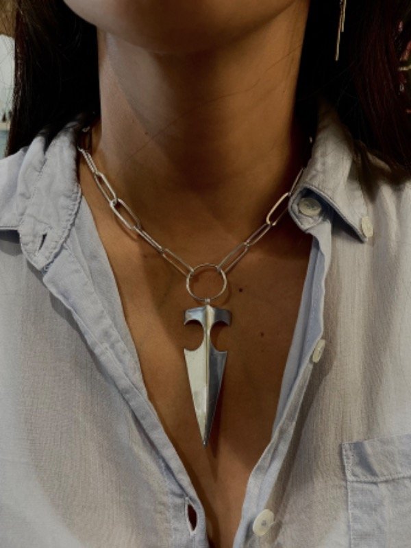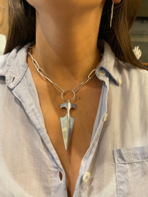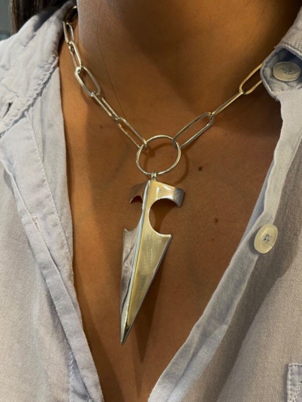Collar eslabones grandes con dije incorporado en punta de Flecha.