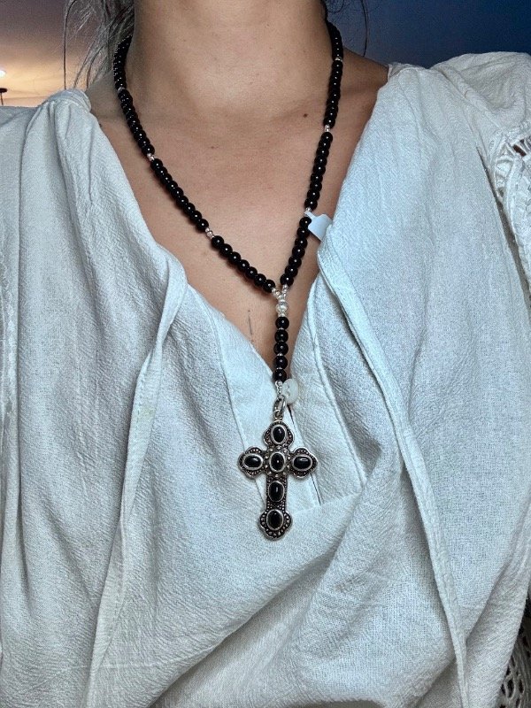 Rosario con bolitas de Ónix y plata 925.