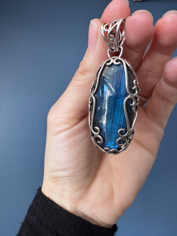 La labradorita azul, además de su belleza iridiscente, posee propiedades tanto físicas como espirituales. En el ámbito físico, se le atribuyen beneficios para la salud, como alivio de migrañas y dolores de cabeza, fortalecimiento del sistema inmunológico y equilibrio hormonal. Desde un punto de vista espiritual, se considera una piedra de protección, que ayuda a disipar energías negativas, reducir el estrés y la ansiedad, y fomentar la calma interior. También se asocia con el desarrollo de la intuición y la conexión con planos superiores.