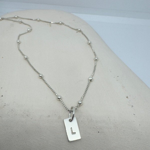 Version de rectángulo pequeño de plata 925 con Inicial a elección