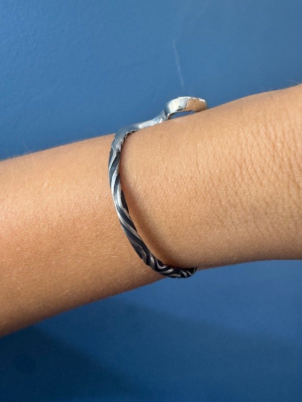 Esta pulsera de plata, de líneas delicadas y presencia etérea, está pensada para quienes valoran la elegancia silenciosa. Su diseño liviano no resta fuerza: cada detalle está trabajado para resistir el tiempo, con la nobleza de un metal que acompaña sin imponerse.