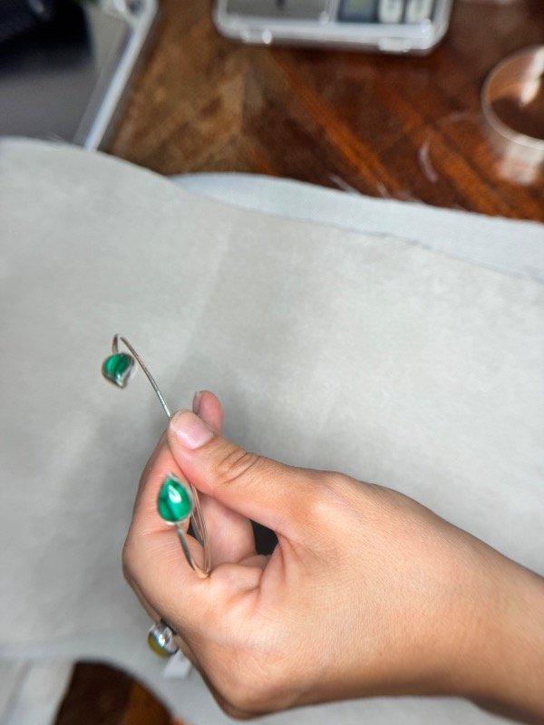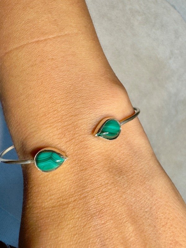 Semi esclava hecha a mano , en Plata 926 con piedras Malaquitas