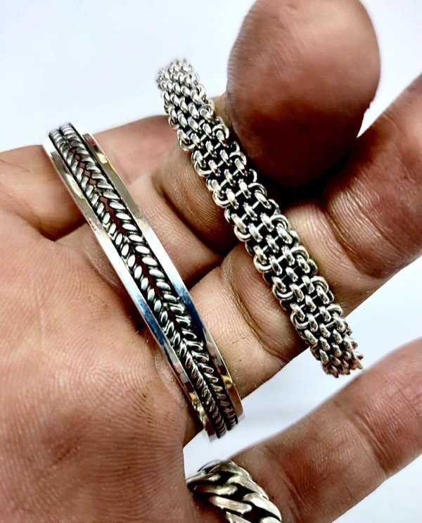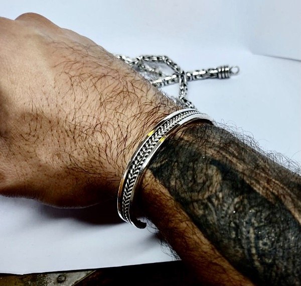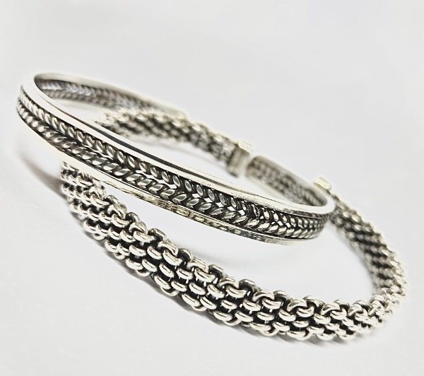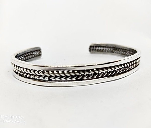 Media Esclava , regulable realizada con hilos enroscados de plata925 y laminas rígidas .