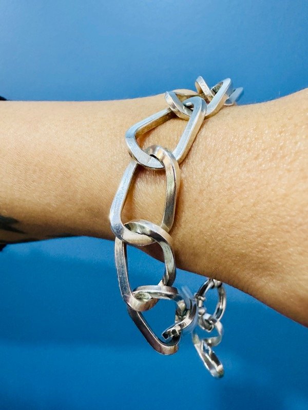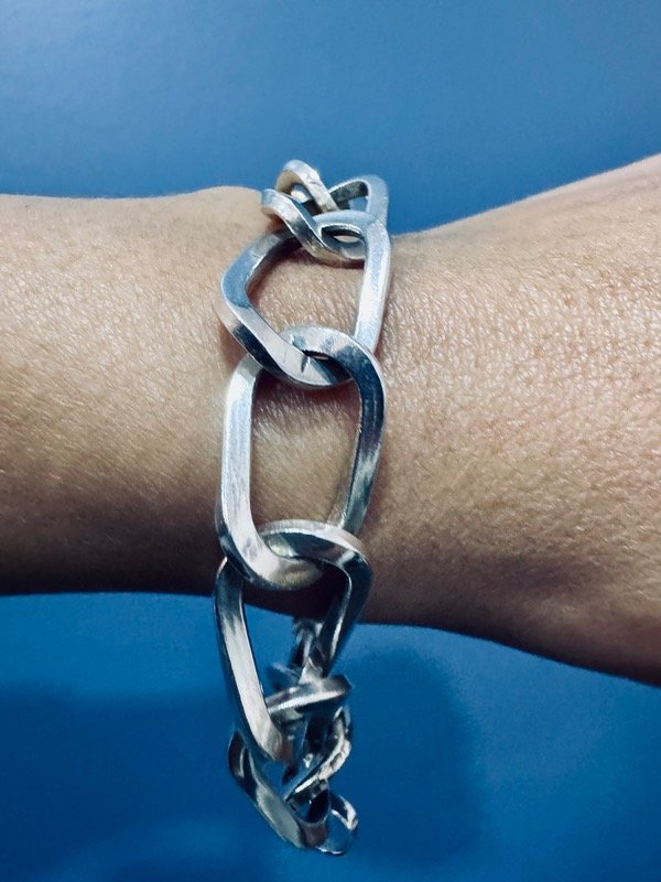 Se trata de una pulsera robusta , realizada a mano en plata 925. De gran porte y solidez!