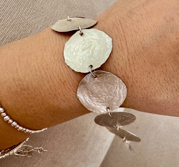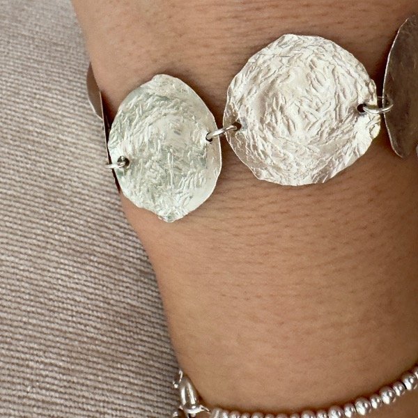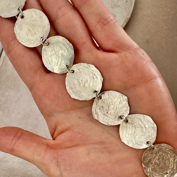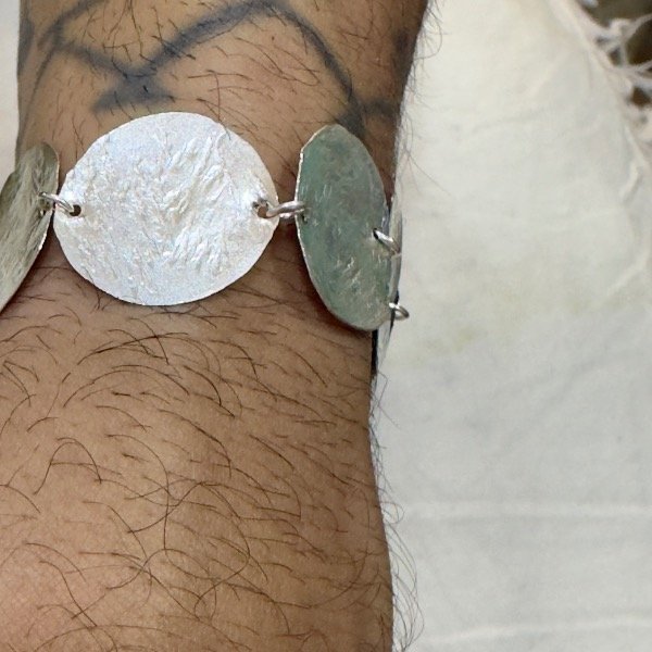 Raíz es una Pulsera que se compone por eslabones que son láminas de plata , a modo de eslabones.